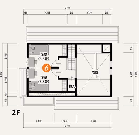 二階空間は子供部屋想定の居室。屋根に包まれたちょっとワクワク感のある空間は、いろいろなアレンジで多彩な使い方が出来ます。